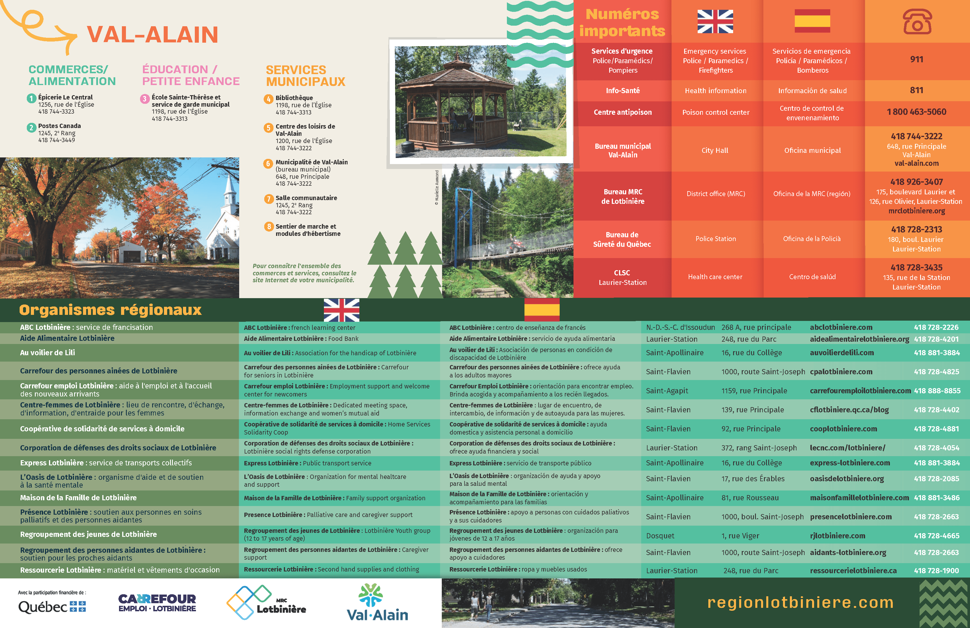 - l’ensemble des services disponibles dans la MRC de Lotbinière